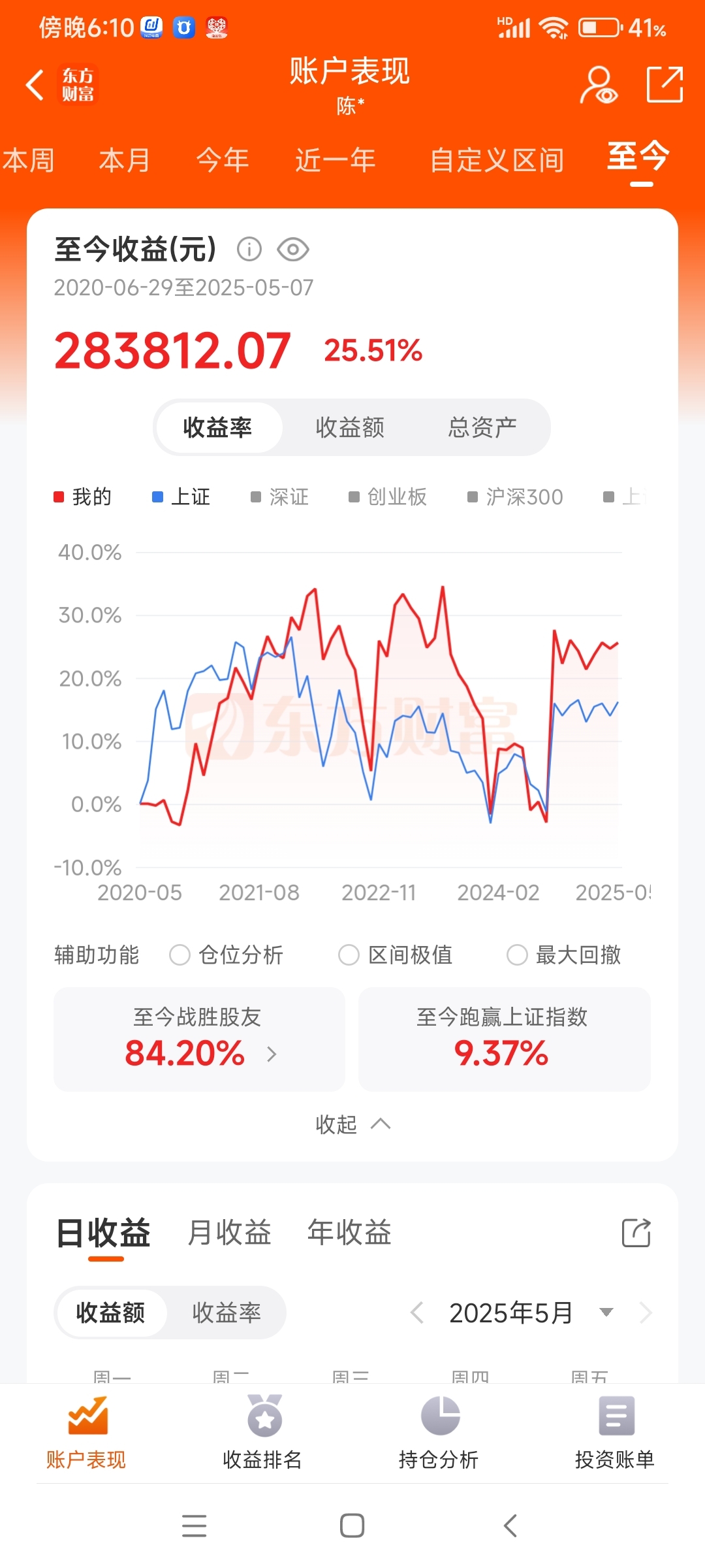账户总收益同比大盘走势截图:
