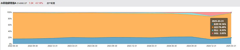 这是一只二级债基,以债券为底仓,采取股票增强策略,股票仓位大部分时间控制在15%-25%之间。