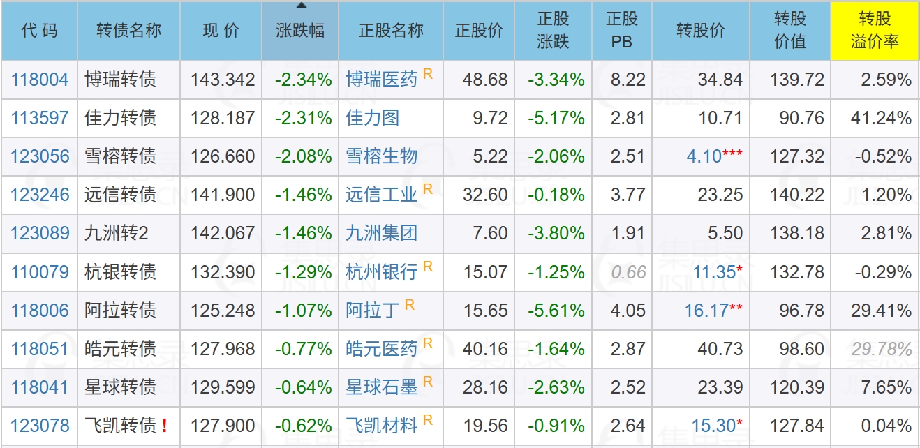 今日跌幅榜多是股债联动跟跌。