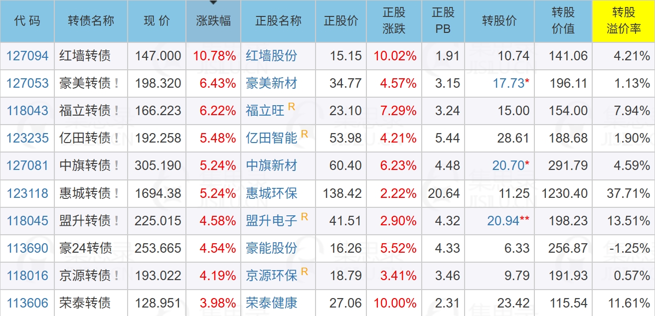 今日涨幅榜上多是股债联动。
