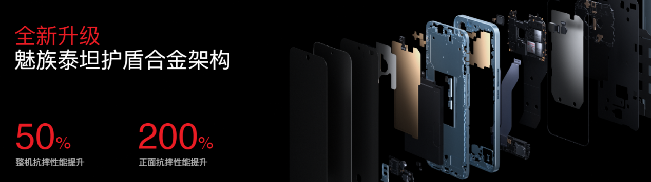 抗摔性能方面,魅族 Note 16 Pro 采用泰坦护盾合金架构,源于汽车灵感防撞梁 + 安全气囊设计,整机抗摔性提升 50%,通过 TÜV 南德抗摔耐跌认证及 1.8 米四角六面跌落严苛测试。