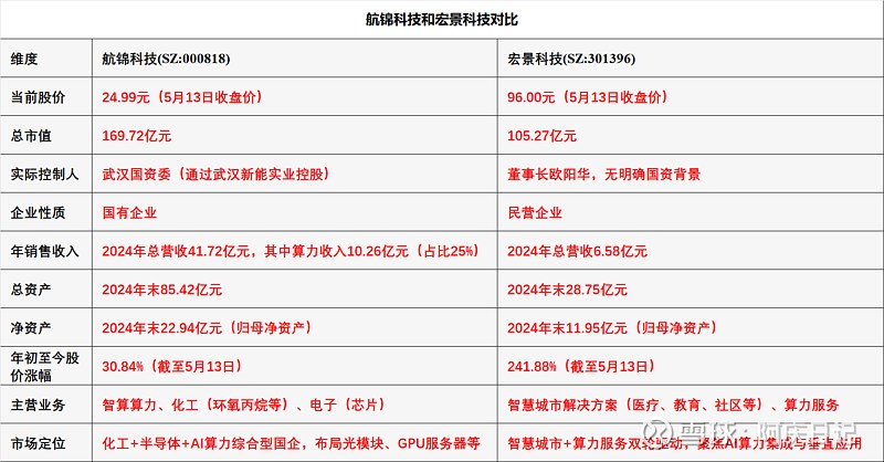 航锦科技和宏景科技,两家算力公司含金量数据对比