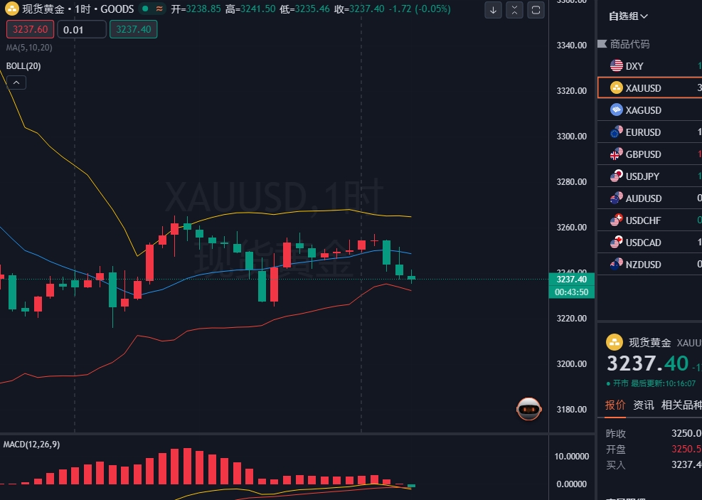 依托一小时布林带,金价在上轨和下轨之间震荡,关注上方3265承压一线以及下方3235支撑一线,今作采用高抛低收策略