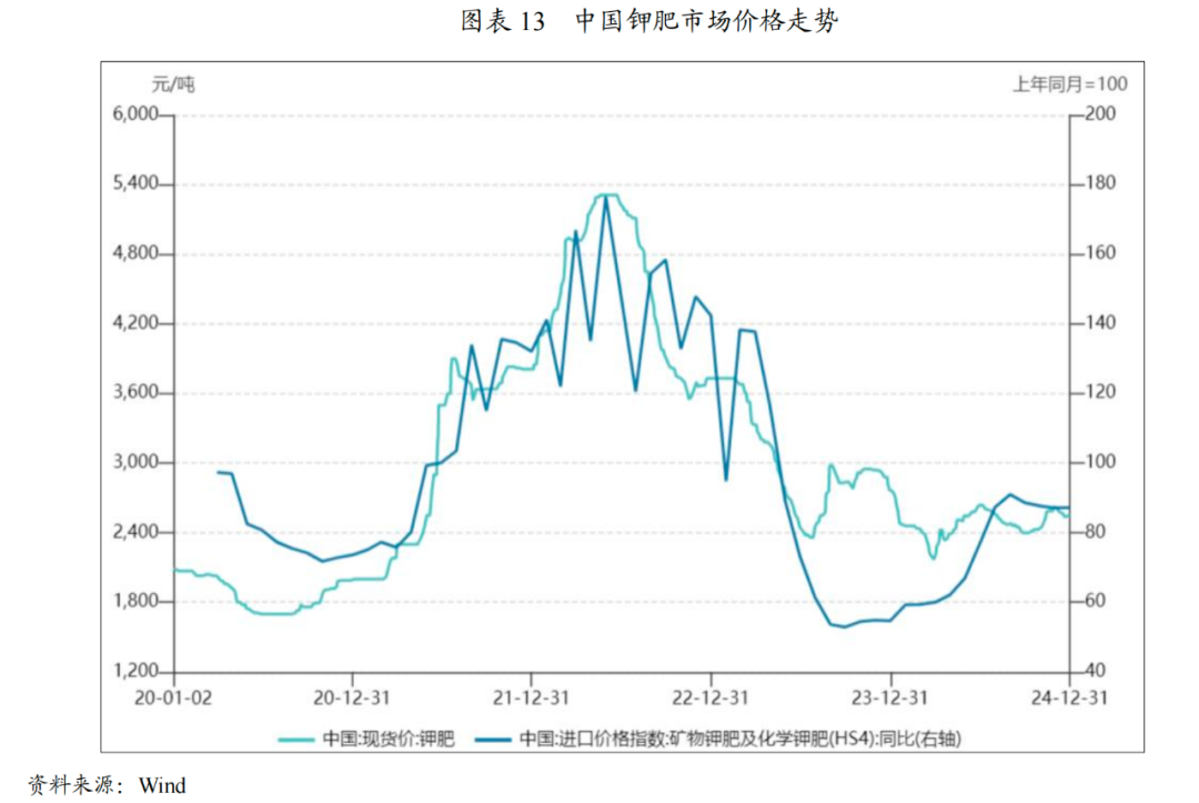 展望2025年,钾肥国际供应仍呈现收紧趋势,国际钾肥价格面临着显著的上行压力,在粮食安全重要性愈发增强的背景下,预期中国市场对钾肥的需求将稳中有升,国际钾肥涨价将在一定程度上推高中国的钾肥进口成本,国内政策端,随着《国家化肥商业储备管理办法》的出台和落实,或在一定程度上平抑钾肥销售价格和供给的季节性波动。