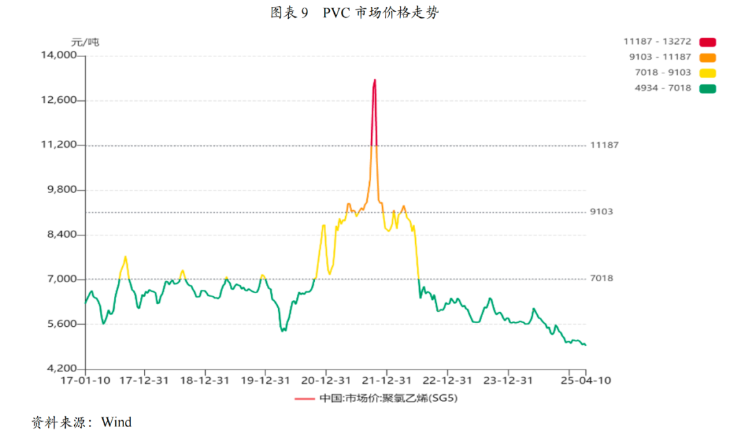 聚氯乙烯是世界上产量最大的通用塑料,其生产工艺分为电石法和乙烯法。随着国内PVC行业规模的扩大和生产工艺的成熟,中国已成为PVC第一大生产国。近年来,中国PVC产能不断提升。据隆众资讯统计数据显示,截至2024年底,国内PVC有效产能2754万吨,年产量2344万吨,同比增长2.7%,产能利用率约为78%,PVC表观消费量约为2073.45万吨,同比略有下降,地产行业的低迷表现对PVC需求形成了明显的拖累,PVC市场整体仍处于供大于求的状态。在需求下降和产能扩张的双重挤压下,PVC价格持续下降,PVC企业亏损幅度加深。2025年,PVC规划新增产能约180万吨,多数为乙烯法装置,且新投产装置为一体化装置,成本竞争优势较大,非一体化、无成本优势的落后产能面临淘汰退出风险;2024年以来,国家发布了一系列房地产刺激政策,加之印度基建高速发展,其刚需缺口带动我国PVC出口保持10%增速,可消化部分国内需求不足导致的供给过剩,预计2025年PVC市场有望逐步复苏,但整体供需格局仍处于供大于求的局面。