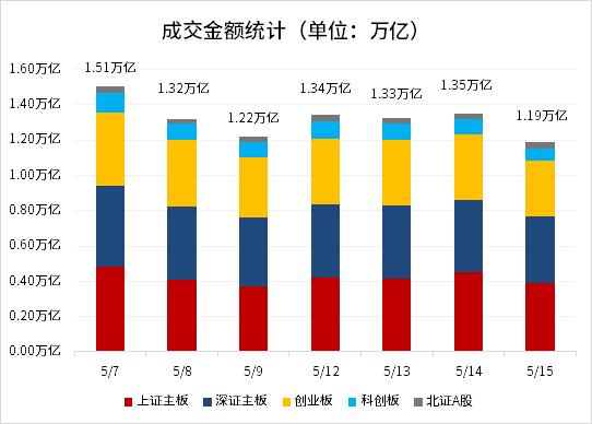 资金方面,沪深京三市成交额超过1.19万亿元,较上个交易日缩量1595亿。