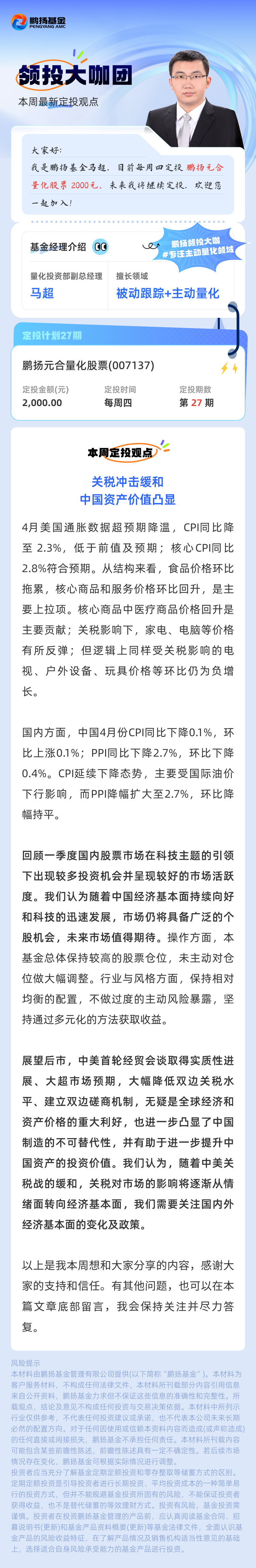 鹏扬基金马超:关税冲击缓和,中国资产价值凸显(定投计划27期)