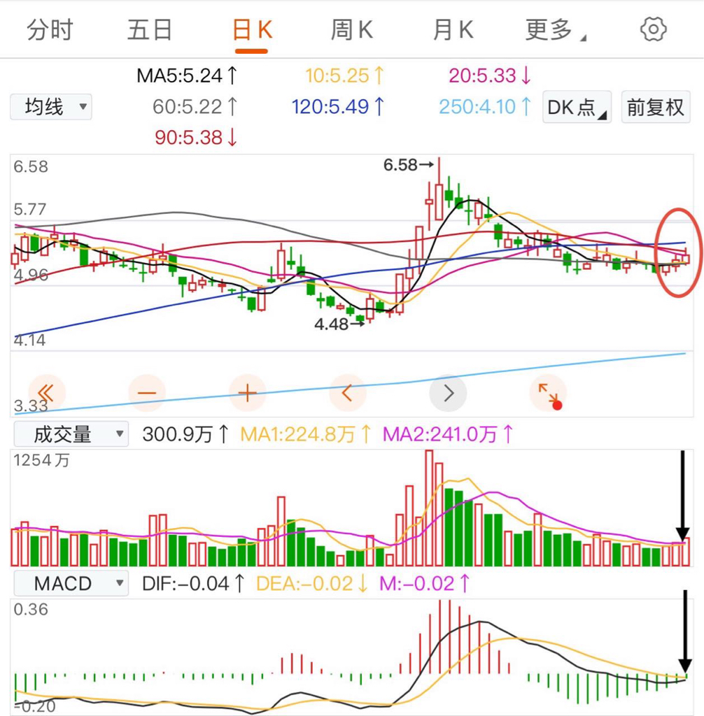 从日线形态上看,三根阳线的量能是微微放大的态势,其次最下方的MACD指标显示,接下来一到两个交易日有可能形成金叉,但也不排除再走第二次调整。以上两个观点还不足以判断其走势,但再结合上方半年线压制和下方年线的强大牵引力作用,我个人分析此处并没有涨上去的机会,只能作为一个弱势反弹看待。