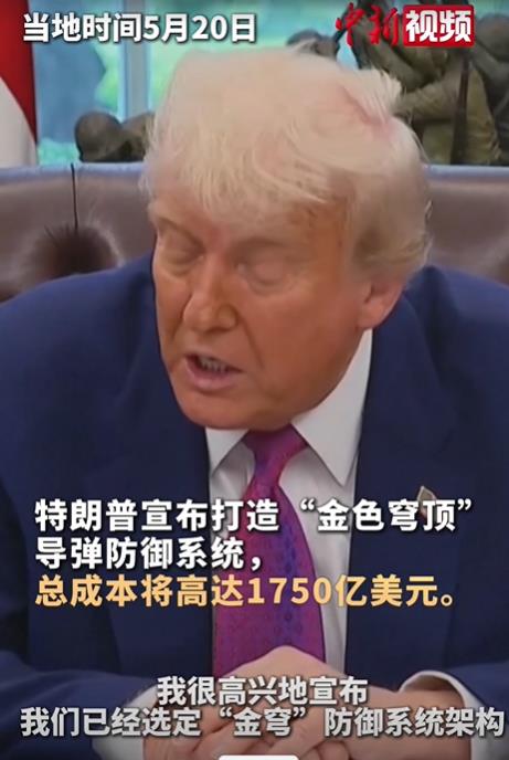 当地时间5月20日下午,美国总统特朗普在白宫发布了名为“金穹”的天基导弹防御系统的发展规划,称该系统计划在3年内“全面运转”。该项目的总成本高达1750亿美元