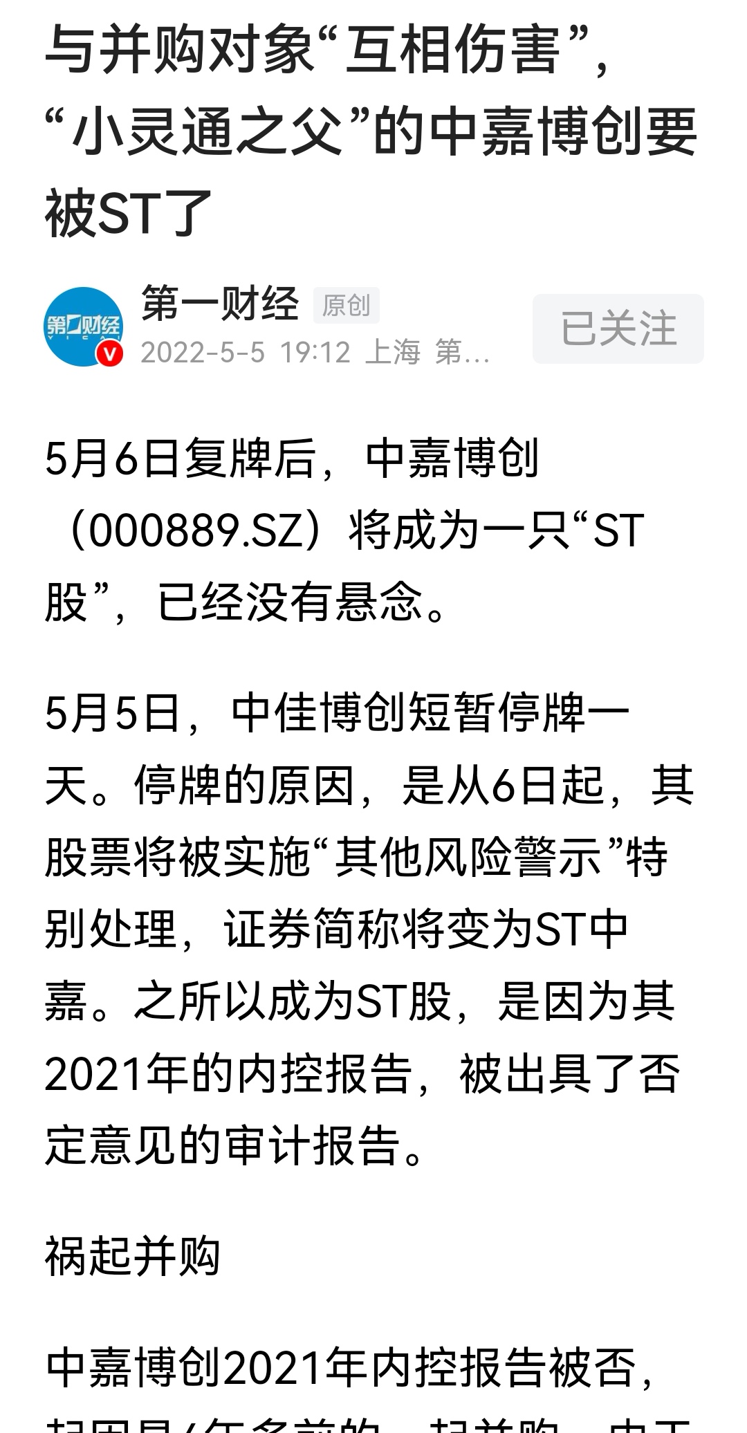 与并购对象“互相伤害”,“小灵通之父”的中嘉博创要被ST了