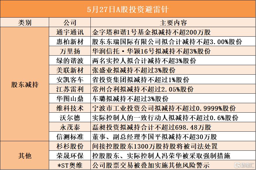 惠柏新材股东东瑞国际有限公司拟合计减持不超3.00%股份;万里扬股东华润信托·华颖16号拟减持不超3%股份;绿的谐波两名实控人拟合计减持不超3%股份;美联新材股东张盛业拟减持不超过3%股份;华图山鼎股东车璐拟减持不超过3%股份;荣晟环保控股股东、实际控制人冯荣华被采取强制措施;*ST奥维公司股票交易被叠加实施其他风险警示