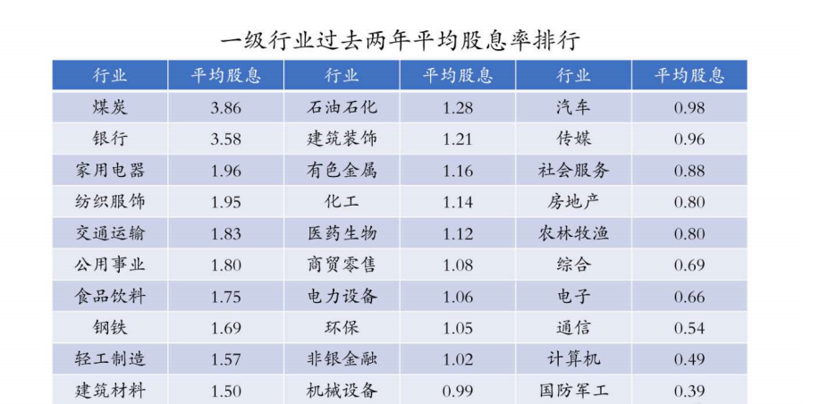上表是我整理的30个一级行业在过去两年的平均股息率情况及对应的排行,可以看到煤炭和银行两个行业的平均股息率断层领先,其次是家电、纺织服饰、交通运输、公用事业等传统行业。另一方面平均股息率垫底的是国防军工、计算机、通信、电子等科技含量很高的高速成长型行业。所以当红利型投资在市场里成为主流时,通常意味着此时大部分的投资者是保守或悲观的,他们不愿意为了追求公司的成长性去冒险、更青睐于确定性的收益,那么相应的站在短期角度思考,追涨就是没有必要的行为了。