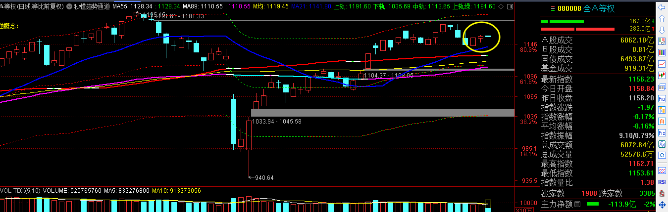 以上为代表普遍个股位置的全A等权日线走势图,如果在5月21日转折切换短线后,认真跟随周评推进时空节奏的,我在黄圈圈出的位置,已经很好的解释了系统节奏的含义,无论是时空,还是板块,位置都清晰可见,即使是代表普遍个股赚钱效应破位多空分界的国证2000日线,也是在周评系统时空节奏内的,只要在系统对应的时空低点,逢低埋伏不追、短线戒贪,短线的收益还是很稳的。