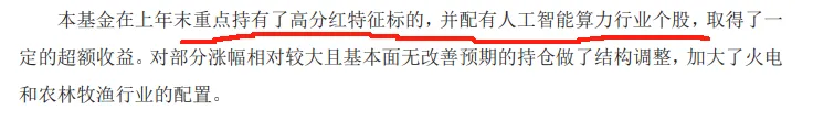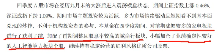 年初重点配置了白酒。二季度配置了人工智能。三四季度加配了具备高分红特征的优质国企。