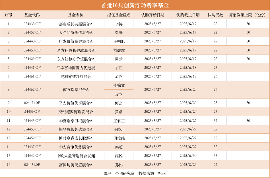 作为公募改革方案落地的首批创新产品,这16只浮动费率基金从上报到获批仅间隔一周,获批到发行更被极限压缩至一个交易日。由此可见,监管层对这批新基金期望殷切。