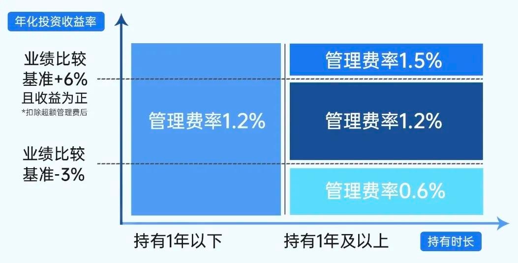 具体来看,当持有期间年化收益率为正(扣除超额管理费后)且跑赢业绩比较基准超6%时(扣除超额管理费后),管理费率为1.50%/年;