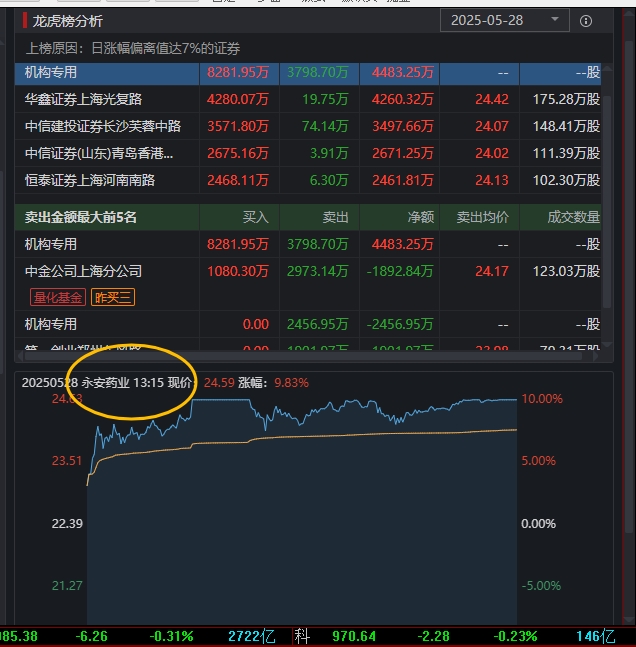 永安药业作为本轮高标抱团的重要成员,今日再度涨停,但市场反应却明显降温。从龙虎榜来看,买一为非公募量化机构,买入8281万元;华鑫证券上海光复路买入4280万元,中信建投长沙芙蓉中路买入3571万元,主力资金依然以量化为核心,同时也有陈小群等部分游资参与套利。卖榜前三均为量化席位,卖四为第一创业郑州东风路,卖出1901万元。结合此前多日的龙虎榜数据,基本可以确认:永安药业这波行情的主导力量是量化资金,游资则处于辅助跟随的位置。然而,今日市场抱团方向整体出现瓦解迹象,永安药业的再度拉升未能带动其他抱团股形成联动效应,反而在资金分歧下,像中超控股等前期高位个股出现补跌,显示抱团内部开始松动。尽管当前尚无法断言本轮抱团行情就此终结,但增量资金缺乏、缺乏有效共振,已使得行情延续性存疑。明日将成为抱团生态能否延续的关键节点,关注抱团方向能否修复,带动市场情绪再度集结。否则,抱团资金若彻底涣散,高位股或将面临集中调整压力。