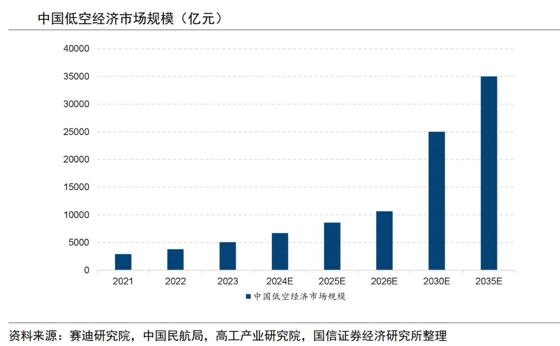 根据中国民航局数据:2025年,中国低空经济市场规模预计将达到1.5万亿元;到2035 年有望达3.5万亿元。