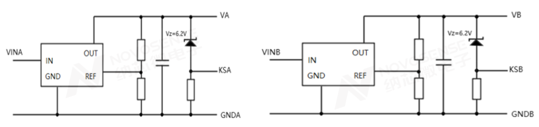 直驱式驱动方案首先需要选取合适欠压点的驱动芯片,如NSI6602VD,专为驱动E-mode GaN设计了4V UVLO阈值,再配合外部正负电源稳压电路,就可以直接驱动E-mode GaN,以下为典型应用电路: