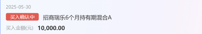今天加仓招商瑞乐6个月持有混合10000元。昨天债市大雨,而权益市场强势,因此单纯布局纯债的话最近收益就堪忧了,震荡行情下,股债配置的固收+产品显得更加不错,招商瑞乐昨天就抵抗住了债市大雨收蛋15个,非常棒。招商瑞乐最新持仓以90.87%的债券为主,另配置有不到10%的权益仓位增厚收益,由于股票仓位不超过20%,整体波动不大,碎蛋还没有超长债多。它的股票仓位主要布局科技和医药,昨天医药大涨,是最近的强势板块,也让瑞乐昨天成功收蛋。招商瑞乐近半年收益率2.37%,近一年收益率10.44%,拉长周期,长期持有收益更佳。马上端午节了,节前买入还可以吃点票息,考虑长期持有买入A份额费用更低,再加一笔。