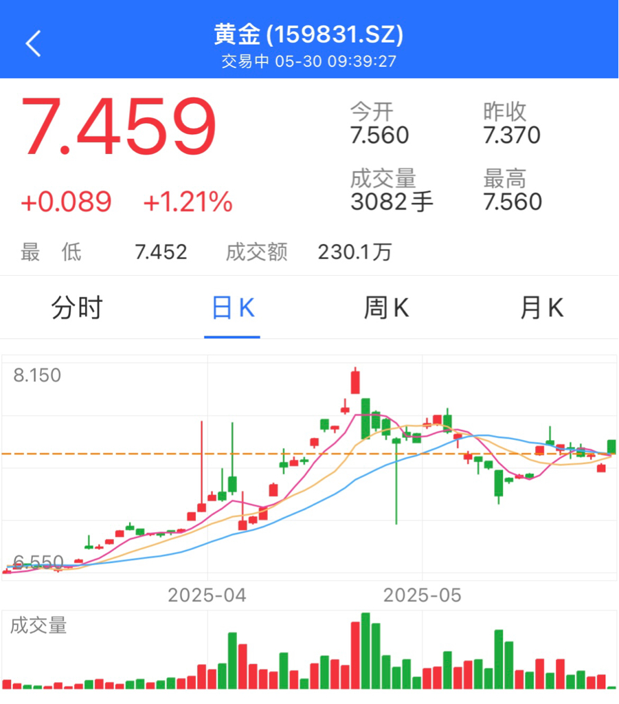 这个很好理解,黄金波动,影响上游矿业公司股价,黄金价格上涨,资本提前预判,推动股价水涨船高,资金加持下,黄金产业股票,弹性更大进攻型更强,近六个月,黄金股票ETF上涨了25.43%,高于黄金上涨了21.14%(截止5月29日,数据来自东方财富)
