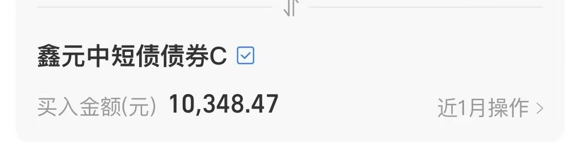 短债类:$鑫元中短债债券C$+1万,鑫元短债昨天收3个蛋,平均一天一个蛋,其主要是我用来代替货币基金的,所以要求也不高,跑赢货币基金就好!鑫元短债近一个月收16个蛋,近一年收181个蛋,综合业绩比货币基金还是强一点,且又是7免产品也灵活。鑫元短债这支我持有蛮久了,持有感省心,产蛋量也不错,符合个人安稳底仓预期。所以接着递增一些!
