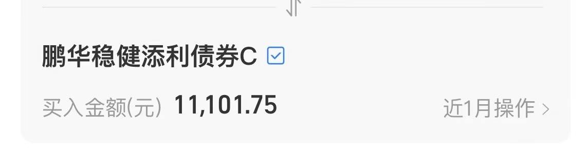 红利:$鹏华稳健添利债券C(OTCFUND|018081)$+1.1万,鹏华稳健添利是一支低波红利产品,其净值波动温和,昨天收6个蛋,连涨5天收30个蛋,近一个月收35个蛋,近三个月收208个蛋,近一年收410个蛋,各维度业绩均是正收益这点相当不错!添利单日曾收43个蛋,进攻能力较强,回撤控制也极好!整体走势属于涨的多丢的少类型,且这类型持有感温和,没有大开大合的感觉,这点个人很满意!今天看持仓也是吃肉行情,追加一笔看长期!