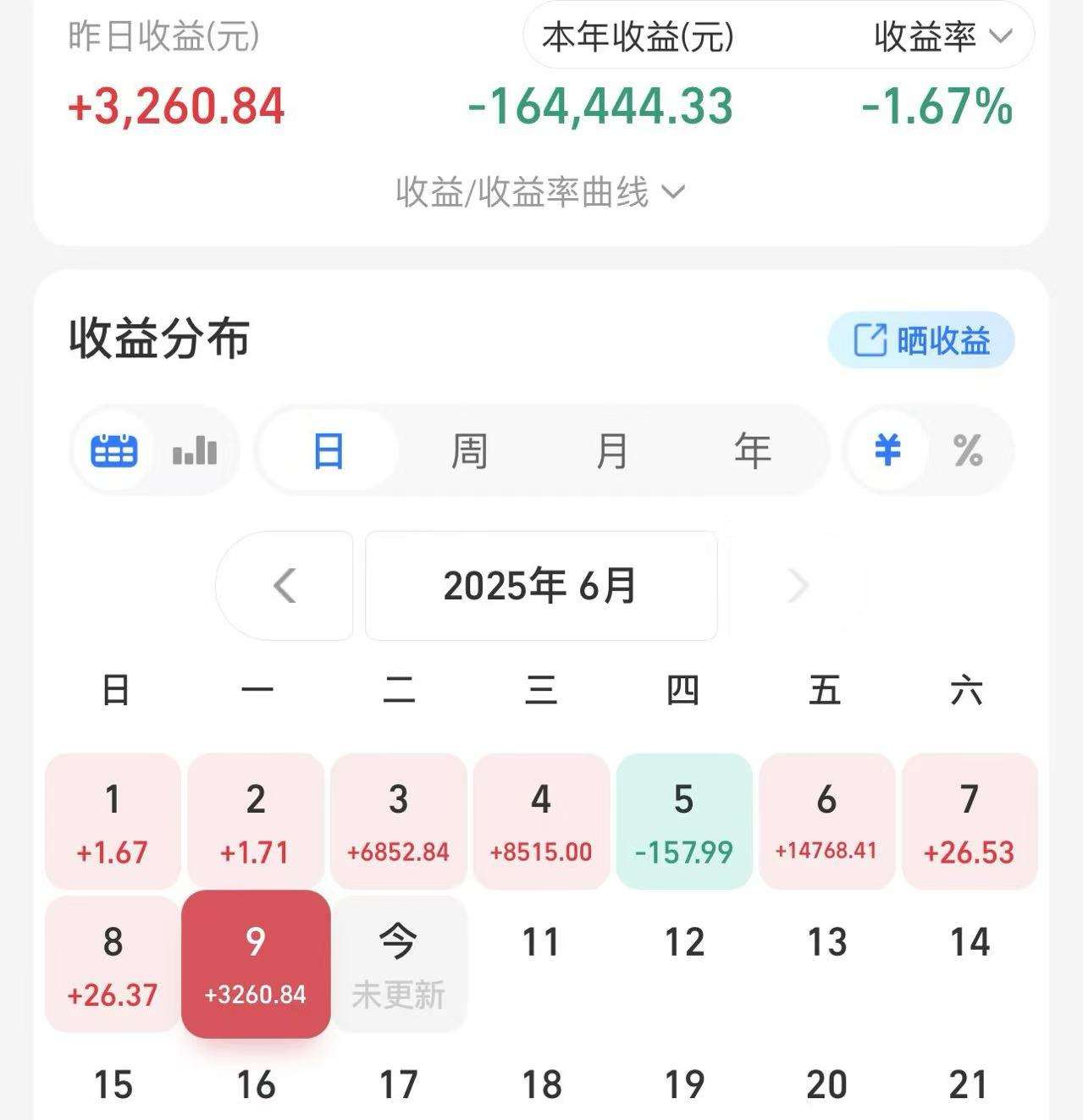 每日收益分享:目前还是消费了16左右,来来回回在这徘徊,之前是消费26左右,回来了近10个也不错了,最近一段时间黄金回落,所以我来回对冲昨晚就只剩下3千了,本来是8千多,因为黄金消费了5400所以就这样了,不过也没啥哈,看长期就行了,就不想那些有的没得了,给自己添加烦恼着实没有必要了。
