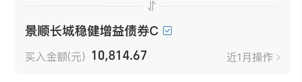 混债类:$景顺长城稳健增益债券C(OTCFUND|016870)$+1万,景顺稳健增益是一支防守混债,波动温和,持仓以108%债券稳健打底+16%权益,权益以港股、红利(金融等)做组合,都是当下潜力的赛道和风格,这样的持仓广泛,能捕捉一定的股市上涨动能,且债券占比多,所以回撤控制比2/8开的混债会更小一些,景顺稳健增益连涨5天收69个蛋,近一个月收81个蛋,近3个月收294个蛋,近一年收871个蛋,各周期业绩均是正收益的同时产蛋能力也不错!近期走势也是涨的多丢的少,完全符合个人防守混债预期,加上今年来纯债类调整频繁,当下看这类产品性价比更高一些,且稳健增益走势稳定,持有感也省心,今天看持仓也是吃肉行情,追加一笔看长期!