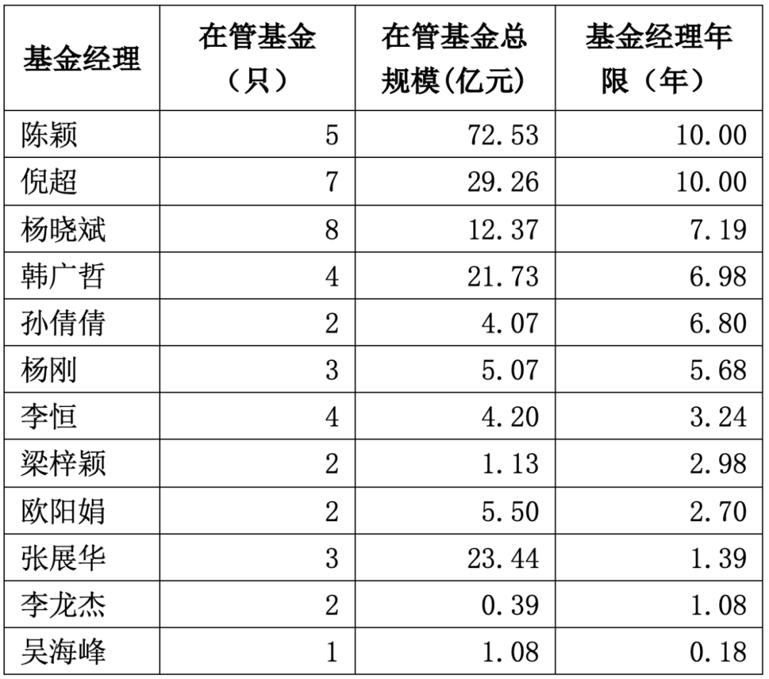 基金经理杨凡因个人原因离任后,金鹰基金的权益基金经理还有12位,其中5位的公募基金经理从业年限不足3年