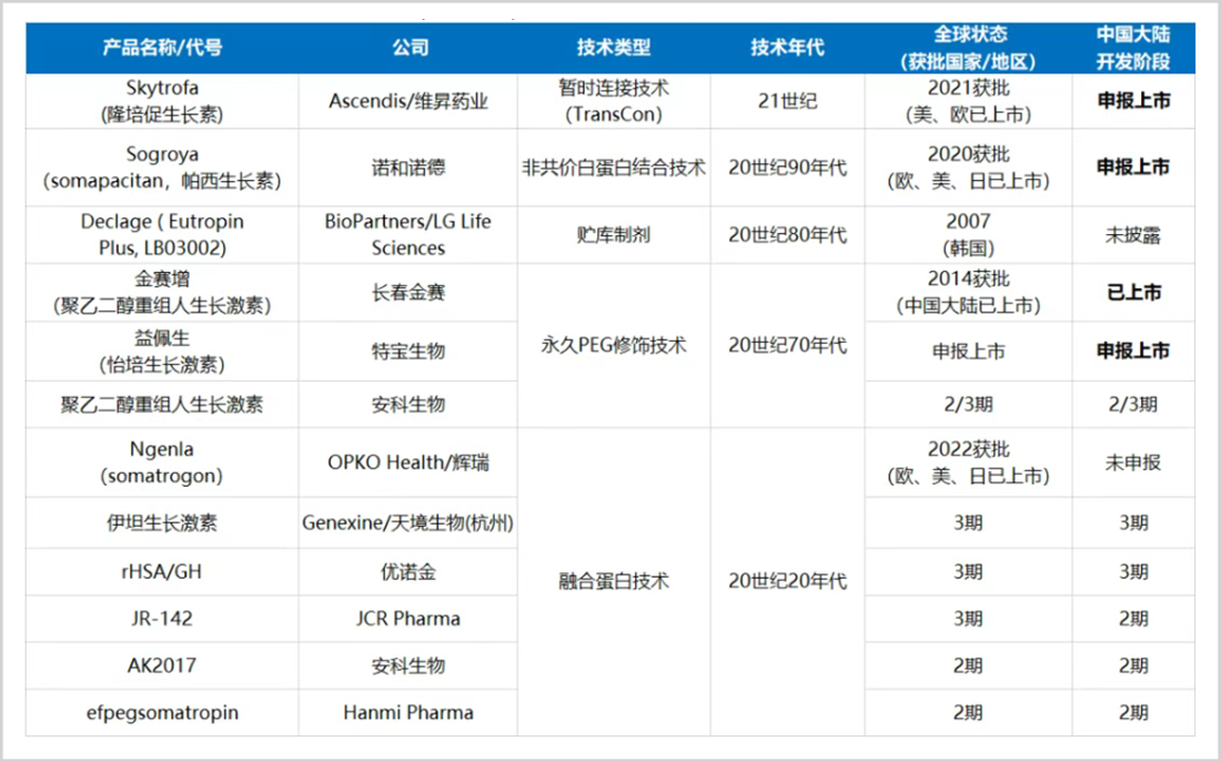 此外,与隆培促生长素处于同期申报上市阶段的竞品,还包括诺和诺德旗下帕西生长素、特宝生物旗下怡培生长激素。不仅如此,天境生物、优诺金、JCR Pharma、安科生物、Hanmi Pharma等企业的相关产品处于二期或三期临床阶段,将成为未来潜在商业对手。