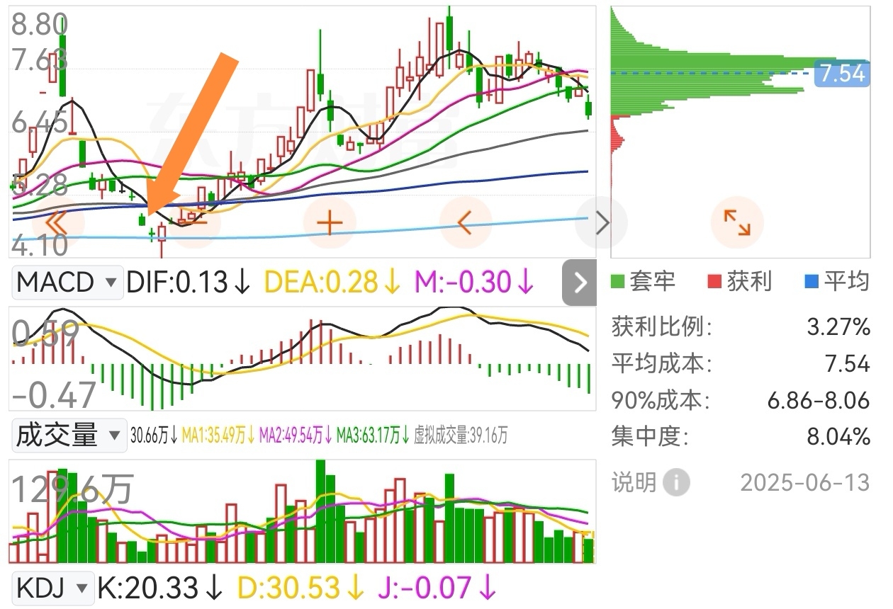 $东珠生态(SH603359)$ 我的吸筹指标已经失真了,说明都在不要命的砸盘,只能按我盘感来,直接说最悲观的情况,今天大概处于箭头这个时期的下跌中继节点,四月是贸易战,今天是热战黑天鹅,那么周一可能还要低开,如果下周某天可以收一个金针探底信号再追入也不迟,反正肯定比我条件单6.99止损价位更低,这几天也会一直缩量缩下去,千万别放量,那样就主力跑了彻底崩盘,现在筹码峰都在套着呢,等主力再进来吧。至于长线可以慢慢玩,走趋势破位失败就下去找大双底,等到两个月后的deepseek新模型再考虑长线仓出货![滴汗 [滴汗]](http://gbfek.dfcfw.com/face/emot_default_28x28/emot7.png)