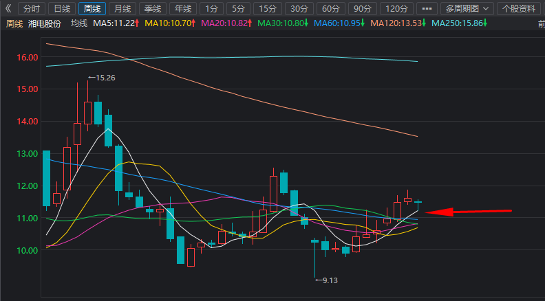 第三情情况,就是弱势走势,上周已经见顶,开始连续下跌。
