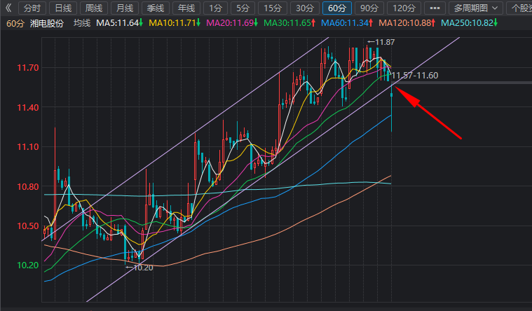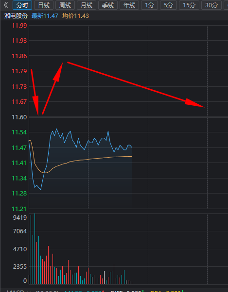 今天目前的分时来看,主力出货的意图也很强,开盘先扔一波大的,然后诱多急拉上去碰了一下60分钟上涨通道的上沿就开始回落横盘出货,除非下午拉红,否则建议大家先出来