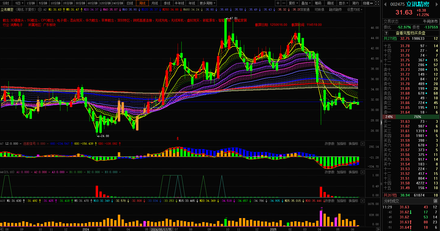 主力资金对股价的影响力还体现在对关键点位的把控上。当股价接近前期支撑位或阻力位时,主力资金通过买卖操作,引导股价突破阻力位或坚守支撑位。如 12 月初股价接近 40 元关键阻力位时,主力资金通过连续买入,推动股价成功突破该点位,显示出对股价走势的主导作用 。但同时,市场上其他资金,如游资和散户资金也会对股价产生一定影响,在短期内造成股价波动,不过从长期和整体来看,主力资金仍是影响立讯精密股价走势的关键力量 。