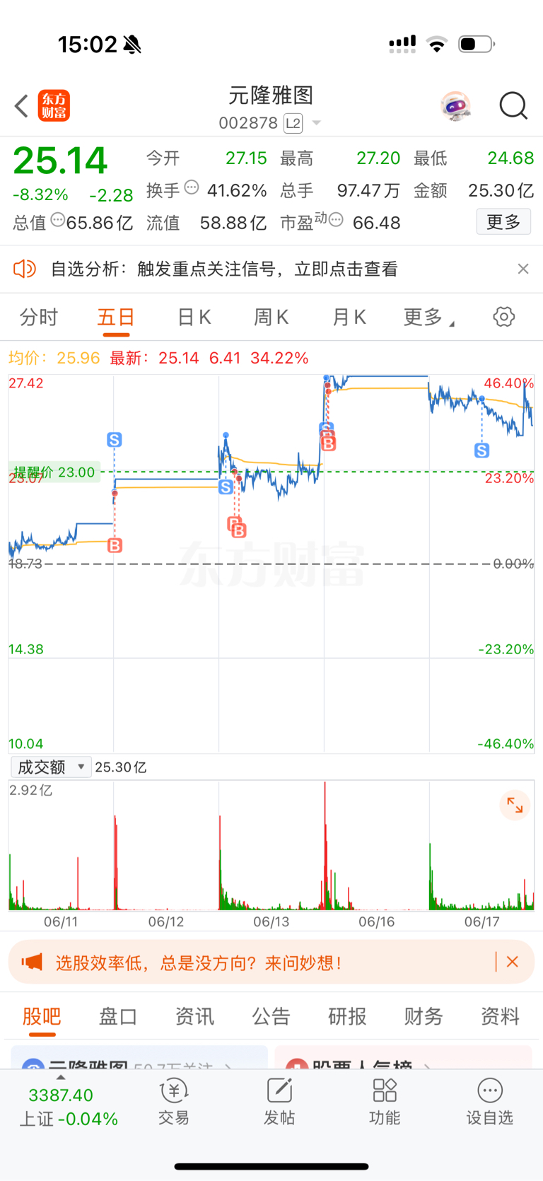 $元隆雅图(SZ002878)$ 一直留到早上尾盘,想着拉红就留,可惜了泡泡玛特大跌扛不住了,尾盘不出所料还是回调,看新主力格局了有没有能力接这盘是割肉还是继续行情,先看23块附近的承接吧,继续行情的话还是看多,毕竟老主力货还没出完就怕他把情绪带坏了