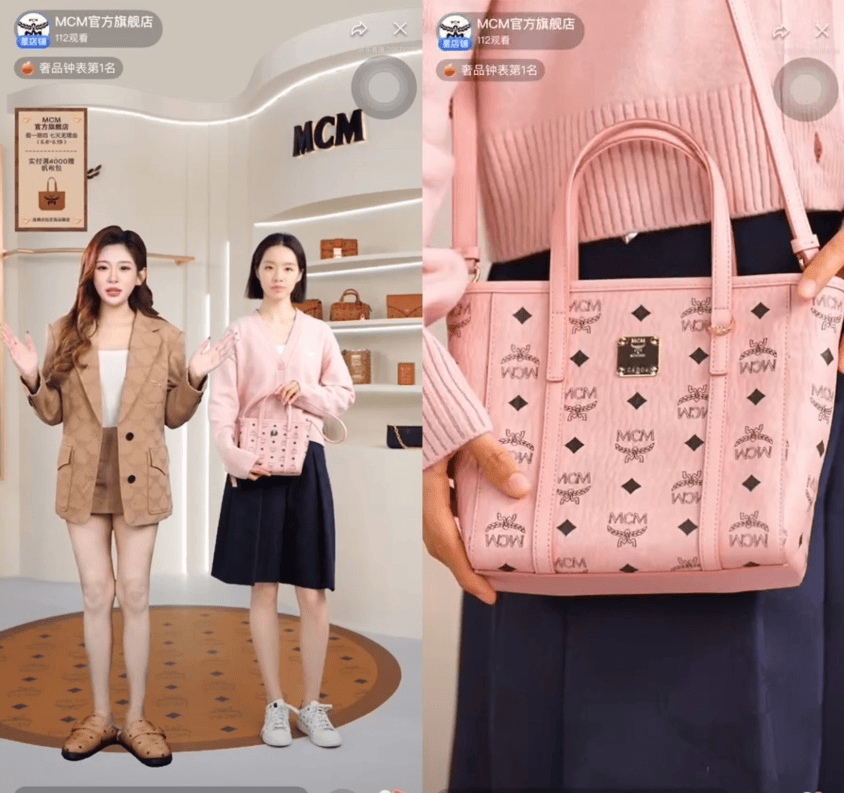 “这款桃花粉托特低调中透出高级感,下班后卸下西装换成碎花连衣裙,子包单独斜挎,瞬间切换甜美约会模式”,MCM直播间里,两位主播默契配合,边讲解边展示;
