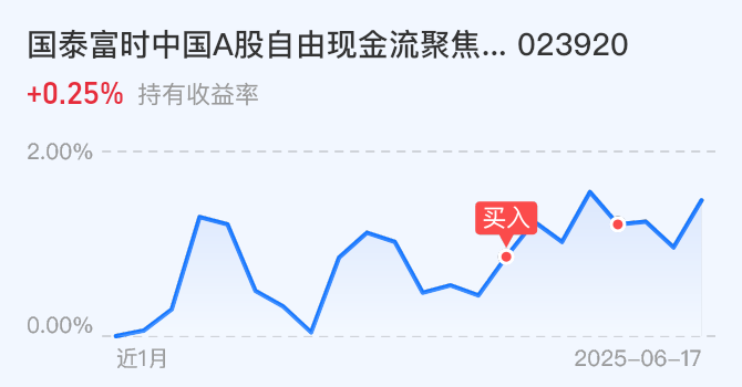 自由现金流基金具备了低波动特性,“类债”特征,它作为底仓型资产,在政策端引导长期资金入市下,也更受资金青睐。并且它在较长时间内保持着相对稳定的表现,不会因为短期市场波动而轻易改变,也因此,它被市场普遍认为是“红利PLUS”!我布局的是$国泰富时中国A股自由现金流聚焦ETF联接C$,有独特的月月分红机制,持有体验更好!后续我还会提升仓位。