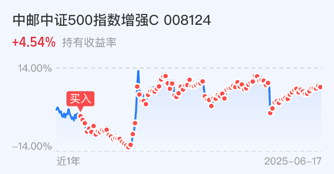 我定投$中邮中证500指数增强C(OTCFUND|008124)$1000元。中证500指数小幅震荡,近期横盘了近一月,考虑到当前位置不高,估值比历史上58.38%时间低,距离前期高点还有不少空间,所以小欧继续定投入场!中证500指数聚焦新兴产业,一键涵盖了电子、医药生物、电力设备等优质行业。