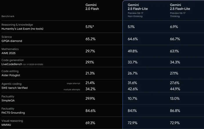 据介绍,Gemini 2.5 Flash Lite在编程、数学、科学、推理和多模态基准测试中全面超越 2.0 Flash-Lite,广泛任务延迟低于2.0 Flash-Lite和2.0 Flash。谷歌称这一模型为其最经济实惠、速度最快的2.5系列模型。