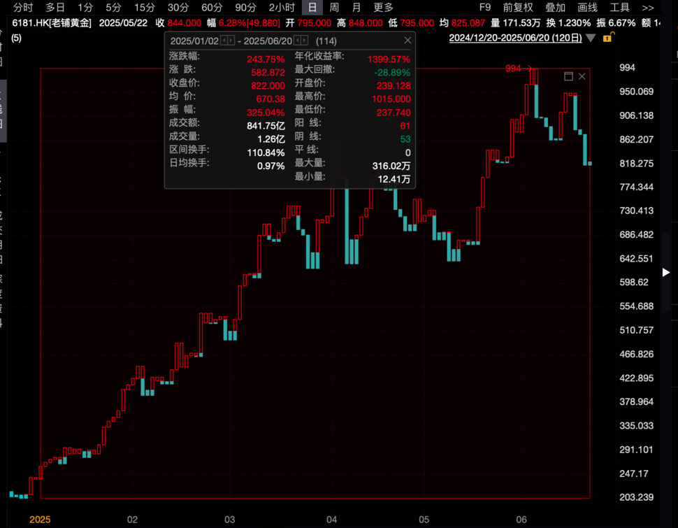 贵金属股走势分化,中国白银集团跌13.54%,珠峰黄金下跌9.63%;老铺黄金涨0.67%,周大福涨1.27%,紫金矿业涨0.95%。国际金价已于6月16日连续四日持续下行。周五亚盘,现货黄金从高点3370美元/盎司一度跌至3350美元/盎司下方。高盛集团重申其明年黄金价格将达到每盎司4000美元的预测,不过也有国际机构预测今年金价还有较大下行空间。