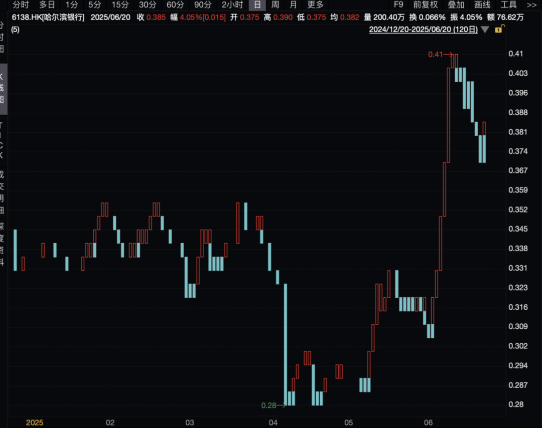 6月20日,内银股强势,哈尔滨银行涨4.05%。消息面上,6月20日,中国人民银行发布贷款市场报价利率(LPR)报价:5年期以上LPR为3.5%,1年期LPR为3%,两者均与上月持平。业内人士预计,LPR报价有可能继续保持稳定。预计下半年央行还将继续降息,两个期限品种的LPR报价将下调。此外,下半年监管层有可能通过单独引导5年期以上LPR报价下行等方式,推动居民房贷利率进一步下调。