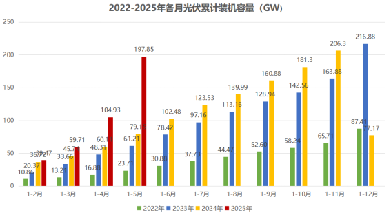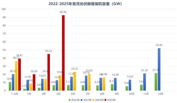 从发电装机容量来看,截至5月底,全国累计发电装机容量达到36.1亿千瓦,同比增长18.8%,彰显出我国电力供应能力的稳步提升。其中,太阳能发电装机容量10.8亿千瓦,同比增长56.9%,新增装机量1 - 5月累计19785万千瓦,5月单月新增9292万千瓦,同比大涨105.45%。