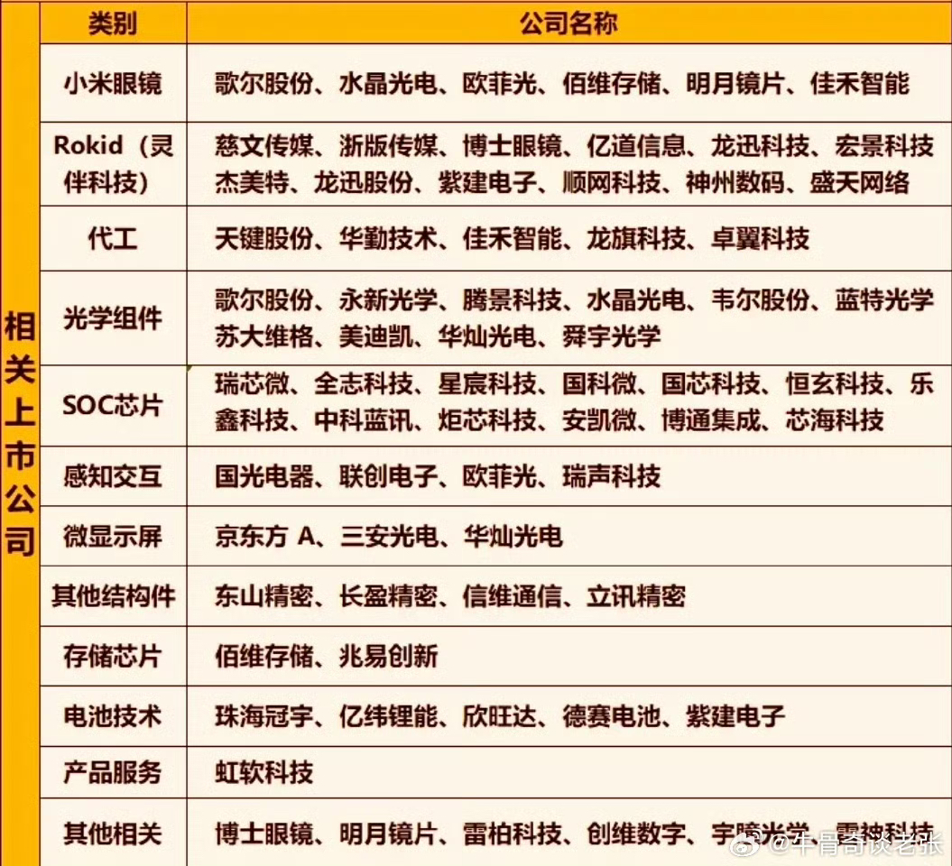 随着小米真AI眼镜发布临近,相关产业链有望迎来新的发展机遇。以下将对A股市场中AI眼镜概念的核心相关股票进行详细梳理。