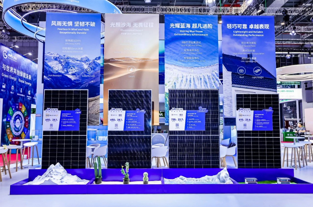 此次展会上,抗冰雹/高载荷、沙漠、海上、轻量化、高端户用等适用极端环境及分布式细分市场的“特种”组件齐聚;DeepBlue 5.0组件领衔登场,多种前沿电池组件技术路线成果集中亮相。
