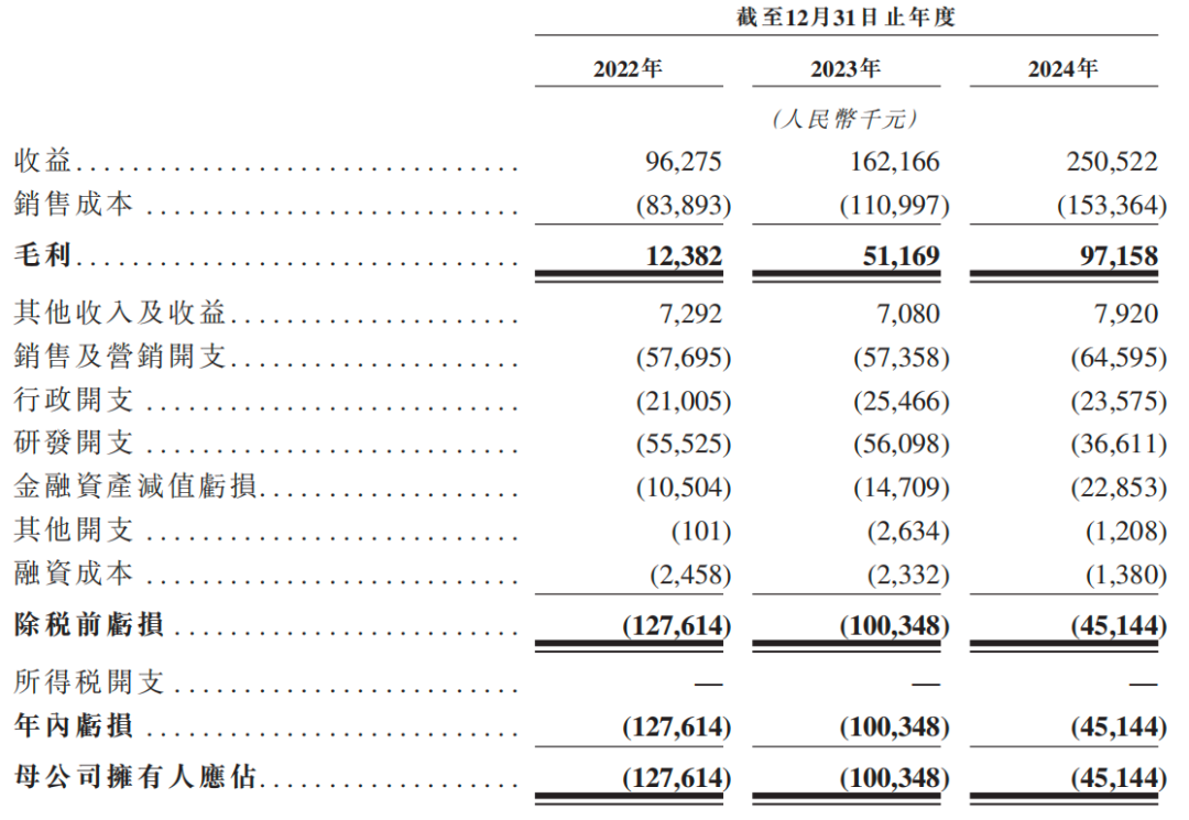 目前该公司仍然处于亏损状态,2022年至2024年,分别亏损1.28亿元、1亿元、4514.4万元,亏损金额逐年减少。
