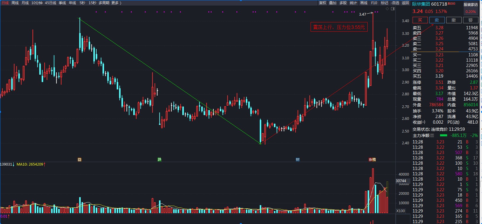剩余的子弹买不了际华(601718),只有加进其小弟管子(000778),能否跟涨,拭目以待、、、