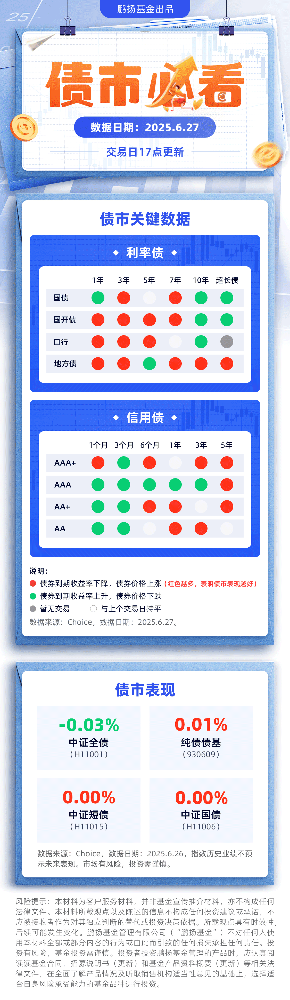 【6月27日17点】今日债市必看 摘要:今日利率债小雨,信用债中雨