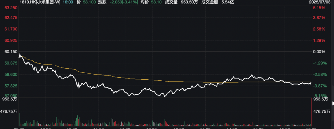 小米集团跌超3%