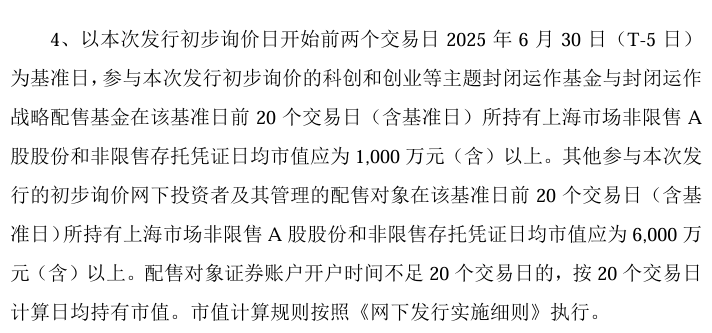 10. 参与网下认购除了要资格审批,提交资产证明外,还要满足6000万市值的要求。